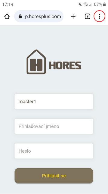1. Otevřete Chrome a zadejte https://kód_hotelu.hores.app